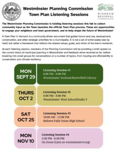Town Plan Listening Session #3Time: 10:00 am - 12:00 pm